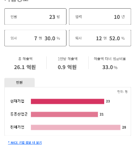 - 기업의 객관적 지표는 https://kreditjob.com/을 참고한다. 건강보험 및 고용보험의 통계지표를 근간으로 하여 상당히 객관적인 정보를 제공한다.